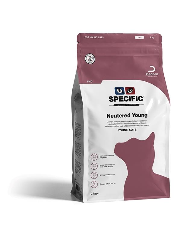 SPECIFIC™ FND Neutered Kitten est un aliment sec pour les chatons stérilisés à l'apport énergétique modéré, destinée à maintenir un poids de forme idéal. Sa forte teneur en Oméga-3 issus de poisson, et le choix d’ingrédients de qualité hautement digestibles, permettent de garder un système urinaire sain et prévenir la formation de boules de poils.
