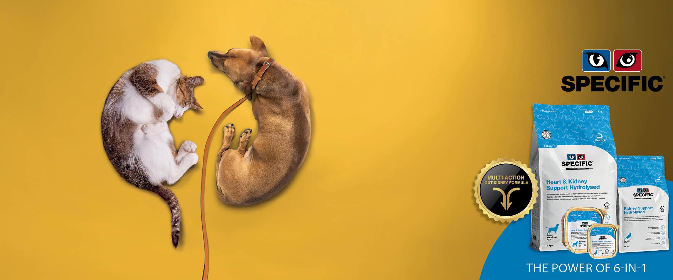 SPECIFIC’s NEW 6-in-1 formula was designed to be different. By introducing highly digestible hydrolysed proteins for optimal absorption, fermentable fibres and AuraGuard for gut barrier integrity, it helps to protect kidney function by supporting the gut-kidney axis, strengthening the gut microbiome and supporting muscle mass.